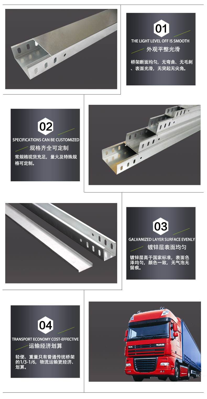 1.外觀平整光滑 橋架斷面均勻,無(wú)彎曲、無(wú)毛刺、表面光滑,無(wú)凸起無(wú)尖角。