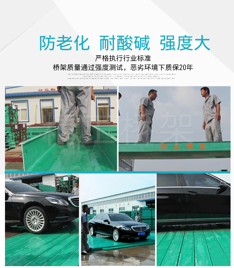 防老化、耐酸堿、強度大——嚴格執(zhí)行玻璃鋼橋架標準,通過強度測試,惡劣環(huán)境質(zhì)保20年。