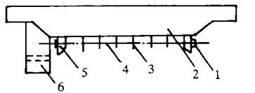 1 - 螺母;2 - 主梁;3 - 吊梁;4 - 拉桿;5 - 支架;6 - 司機(jī)室